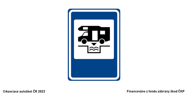 Označuje servisní místo pro sanitaci hygienických zařízení obytných automobilů a obytných přívěsů.