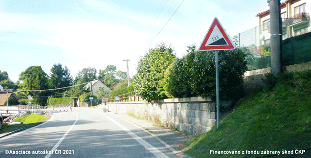 na úsek, kde místní podmínky činí klesání pozemní komunikace nebezpečným.